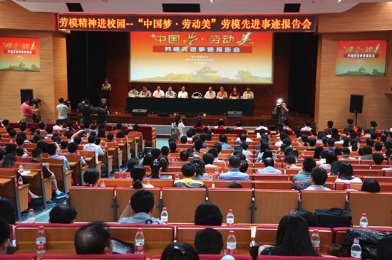 9月29日上午,由湖北省教育工会联合省教育厅开展的“中国梦·劳动美”劳模先进事迹报告会在武汉大学人文馆举行。武昌首义学院工会陈琼、机电院雷丹、城建院鲁云仿、经管院王慧娟、新法院袁循作为教师代表参加报告会。