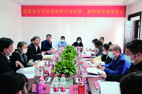 经管、基科部代表团在经管学院会议室进行分组讨论。代表们围绕学校发展和教职工关注的问题坦陈直言、建言献策,纷纷表示,学校坚持以教师为主体、以学生为中心,深入了解师生实际需求,踏实为师生服好务,振奋了士气、凝聚了人心。会上还就辅导员队伍建设和发展;嘉鱼校区建设和师生教学、学习和生活情况;师生心理健康教育;教师队伍发展等进行了交流。
