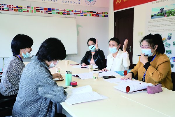 信科、外语代表团在信科院会议室进行分组讨论。代表们认真审议大会报告,纷纷表示心潮澎湃,对学校未来发展更加充满信心。同时建议充分挖掘、梳理、完善学校办学优势,着力打造校园文化名片,以校园文化建设推动科研、教学、管理、师德等全方位提升。代表们还就为嘉鱼校区上课教师购买交通险;根据学科特色调整教师任期岗位目标考核要求等展开了讨论。