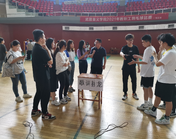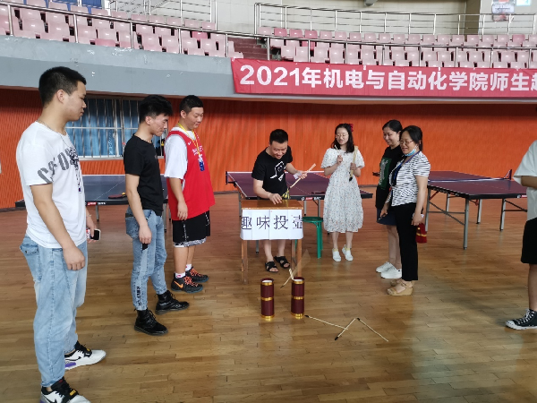 为深入开展党史学习教育,扎实推进“我为群众办实事”实践活动,丰富师生的课余文化生活,普及全民健身运动的观念。6月18日中午,在校工会的支持下,由机电与自动化学院分工会主办,院分团委承办的师生趣味运动会在体育馆内举行。院党总支书记罗蕊、院分工会主席熊慧萍以及近60名师生到场参加。本次活动共有5项小游戏,分别为:乒乓球绕桩、萝卜蹲、传声筒、歌词接龙和投壶,师生可自由组队参与游戏项目。