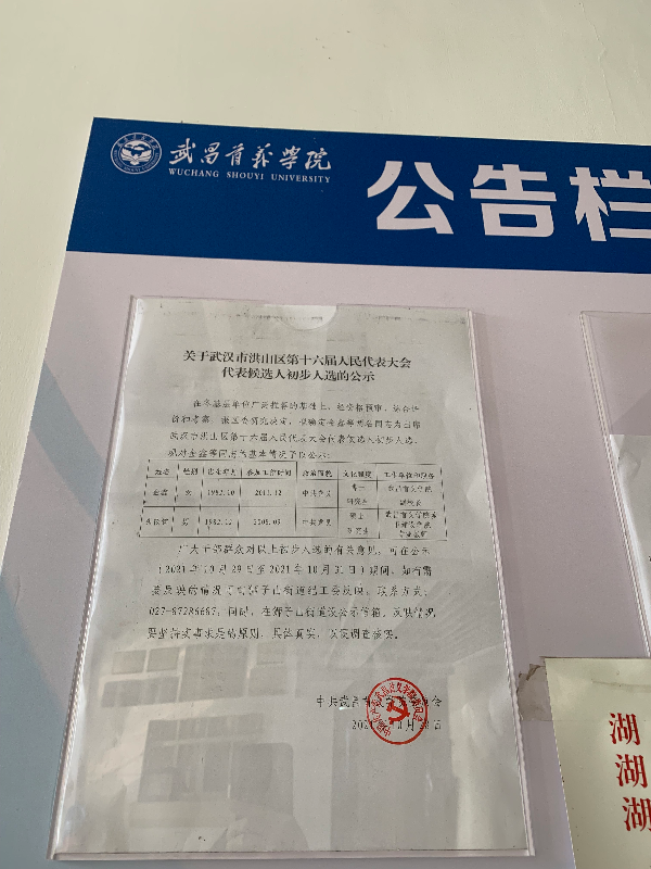 根据宪法和法律规定,按照《狮子山街道区人民代表大会换届选举工作方案》和《武昌首义学院洪山区人大代表换届选举工作实施方案》(院党〔2021〕46号)的文件精神,我校区人大代表换届工作正在有条不紊地进行中。按照换届选举工作的时间安排,选举工作办公室均在校园人流量较为集中的各个公告栏张贴了武汉市洪山区选举委员会各项公告及各项公示材料。