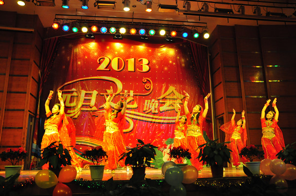 百花齐放辞旧岁,万紫千红贺新春。12月28日晚,2013年教职工元旦晚会在模拟法庭盛情开演。董事长金国华、校长周进、副校长王炎坤、李桂兰、金国杰和全校师生一同观看了晚会。